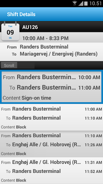 - Veja os detalhes do seu turno com rolagem automática para mostrar os detalhes atuais
